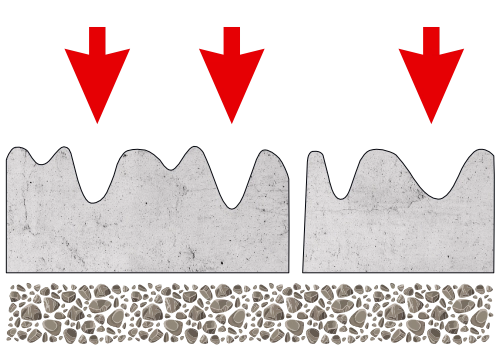 Die Oberfläche von Betonsteinen, die mit einem Hochdruckreiniger bearbeitet wurden, erscheint unter dem Mikroskop als stark aufgeraut.